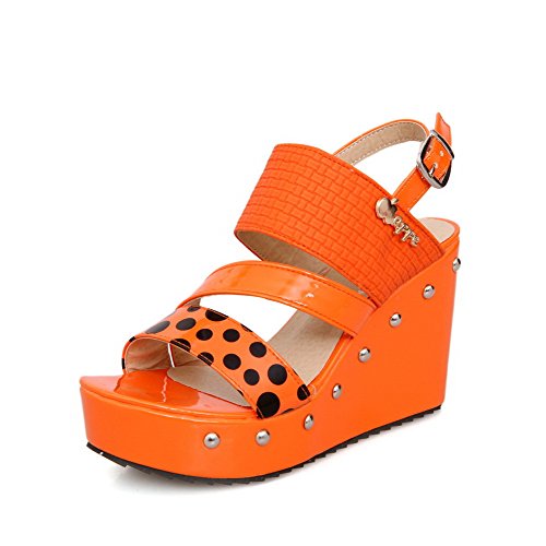 Best Seller! VogueZone009 Womens Open Peep Toe High Heel Wedge Platform PU Soft Material Solid Sandals with Buckle, Orange, 8 UK Review